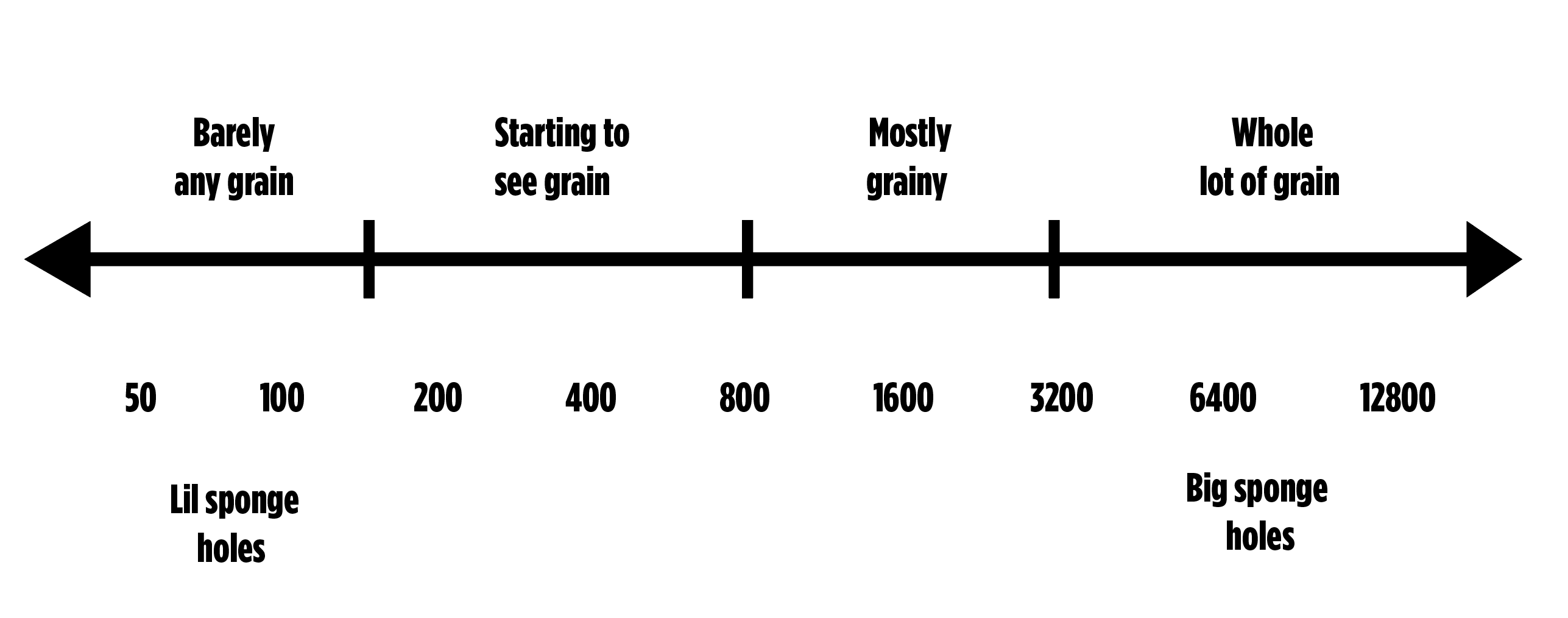 So there are two parts here, our sensor and the image it creates. The more light our sponge soaks up quickly the bigger holes the sponge will have. These bigger “holes” result in more grain in our image.